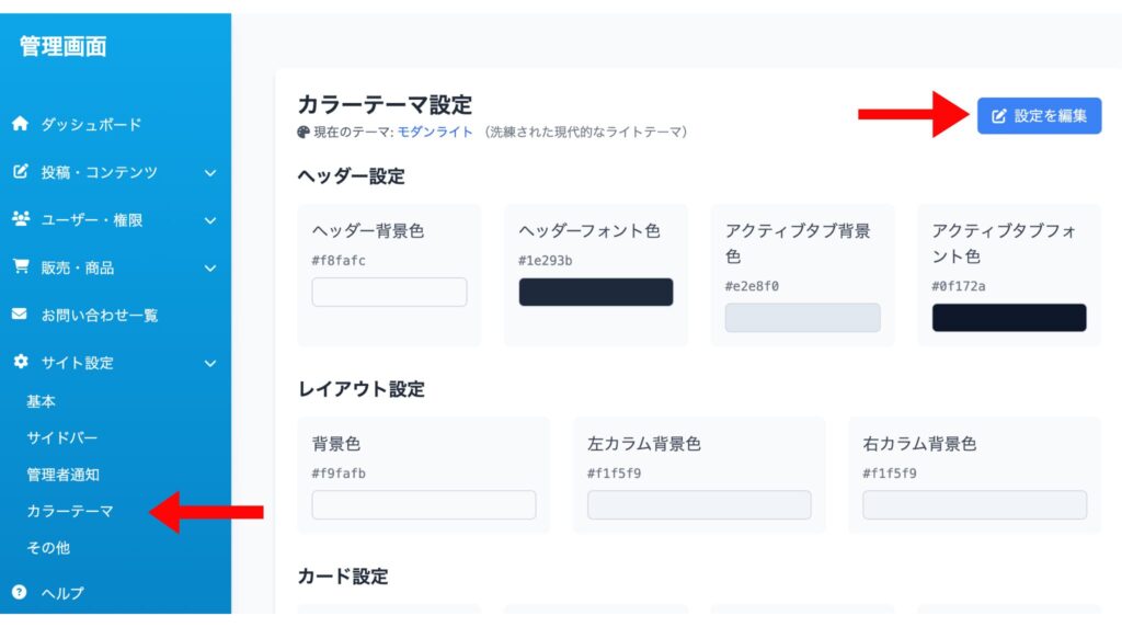 画面右上の「設定を編集」を押すと、色のカスタマイズ画面が開きます。